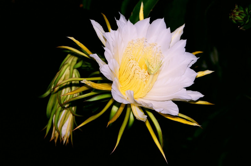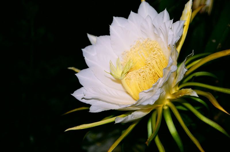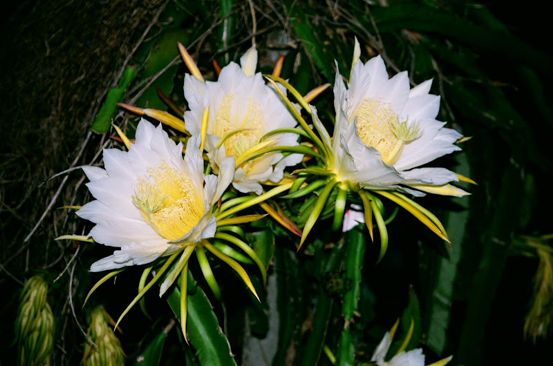 火龍果的花長得跟曇花很像,也在半夜開花,但是比曇花大很多,香味很濃。