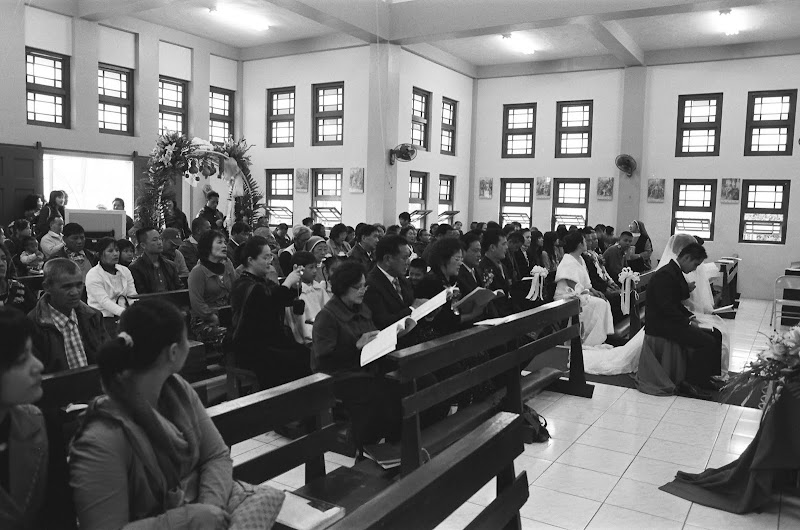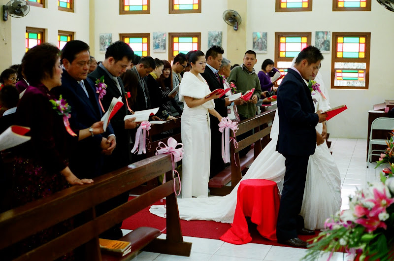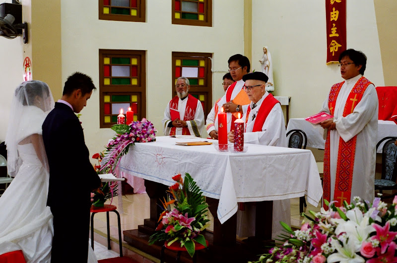 婚禮是天主教儀式,婚宴則與漢人無異,外燴辦桌的菜色則較接近敬神或廟會的等級,但是份量十足。