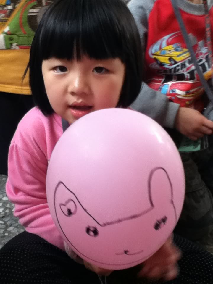 也因為他的要求~我們偷藏了一顆她很喜歡的粉紅色氣球:)