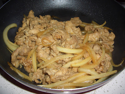 3.稍微炒一下洋蔥就可以將步驟1.的肉下去一起炒,小心肉不要太老喔!