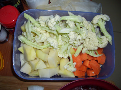 馬鈴薯、胡蘿蔔、花椰菜(綠花椰配色會比較好看)
