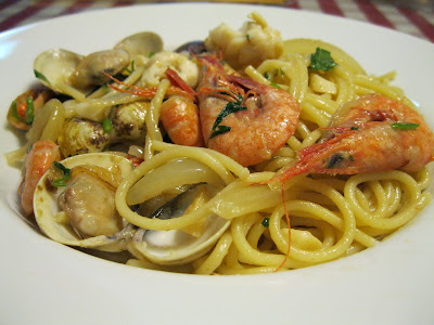 食譜----奶油白酒海鮮義大利麵+伯靈頓寶寶熊(噗)