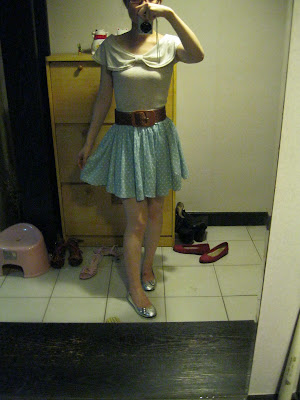 所以買了一件淺藍色水玉點點的裙子