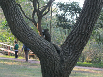 有隻松鼠在吃遊客丟掉的冰淇淋湯匙