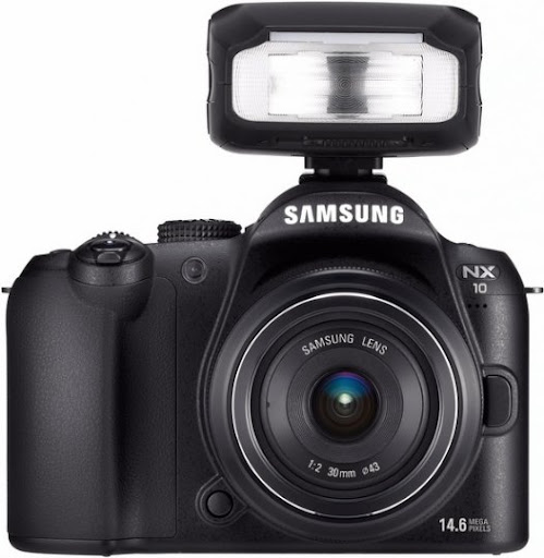 當然身為DSLR的機種 熱靴可是不能少的 NX10也可以外接熱靴並跟機身同步