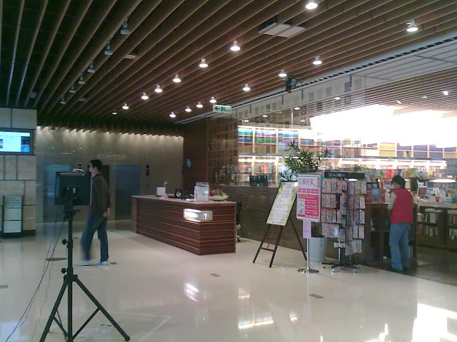 一樓大廳櫃檯、額溫計和書店
