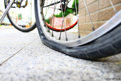 原來這條公路胎面軟的根什麼一樣 超容易被刺破 刺穿的不過是片玻璃