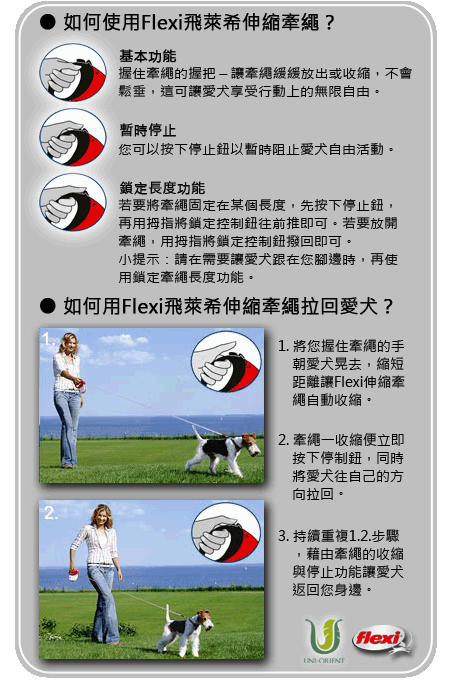 1.請勿直接用Flexi牽繩綁您的愛犬需搭配項圈使用