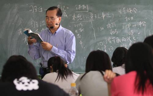 這一堂課講史記,林雄高點一名學生站起來回答,這名學生以白話文回答,另一名學生接以原文答:項羽曰:“彼可取代之”;項梁曰:“毋妄言,族矣”。