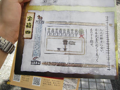 上圖就是這裡的寶箱與謎題,謎題是"這間神社所供奉的神祇被當地人暱稱為?",答案是"歡喜天"。解開謎題之後據說被稱為日本百大靈場之一的福生院裡頭有很多奇妙的擺飾,例如似乎是摸了就會發財的黃金福袋和修行者赤腳去踩一踩就能得道的草鞋腳印等等,說實在的這間神社的確是麻雀雖小五臟俱全,不用擔心尋寶行程會無聊,因為在每一個點你都可以逛個半小時一小時的。