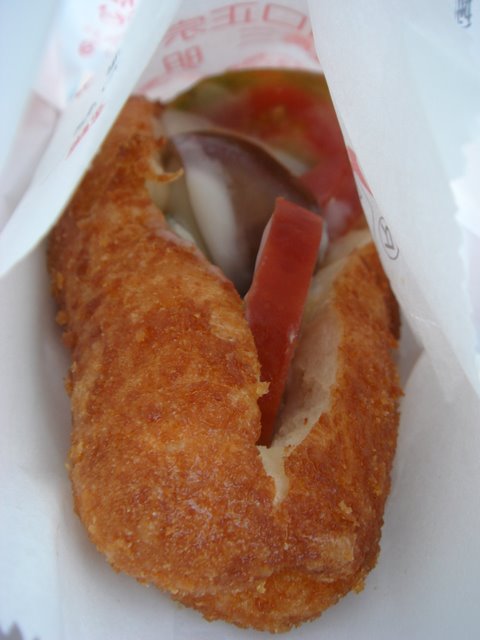 就看到阿姨們一個個把麵包往油鍋裡炸