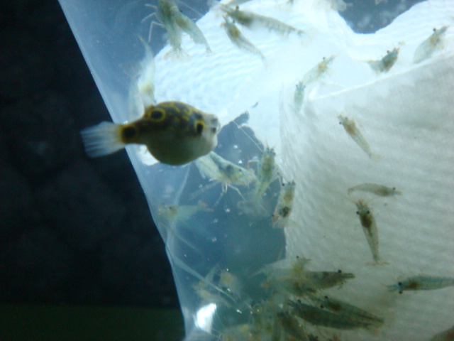 比起燈魚跟麵包蟲,娃娃們還是比較愛吃黑殼蝦。