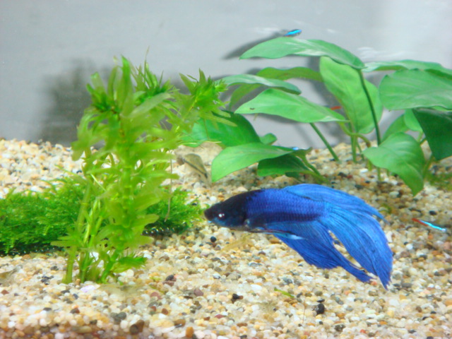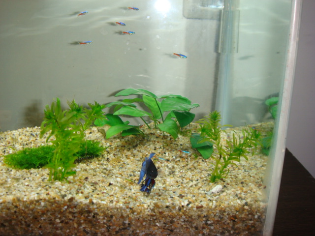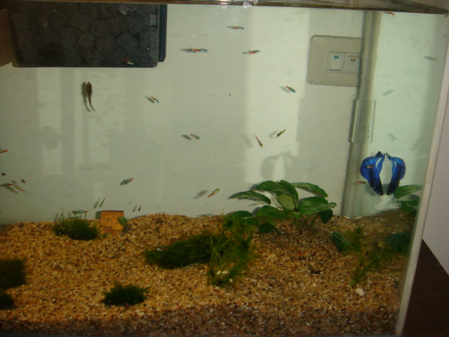 空空的兩尺缸,才剛養水,同事建議裡面要養鬥魚,鬥魚很漂亮。網路上絕大多數人都說鬥魚只會跟同種的公鬥魚鬥...........