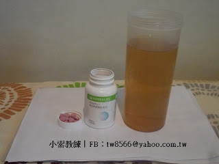 | 這是小索早餐三杯水的第二杯水(呵呵...什麼三杯水賣個關子) 左邊就是賀視愛營養錠~保護眼睛用的喔!這可是第一天開香體驗文喔 |
