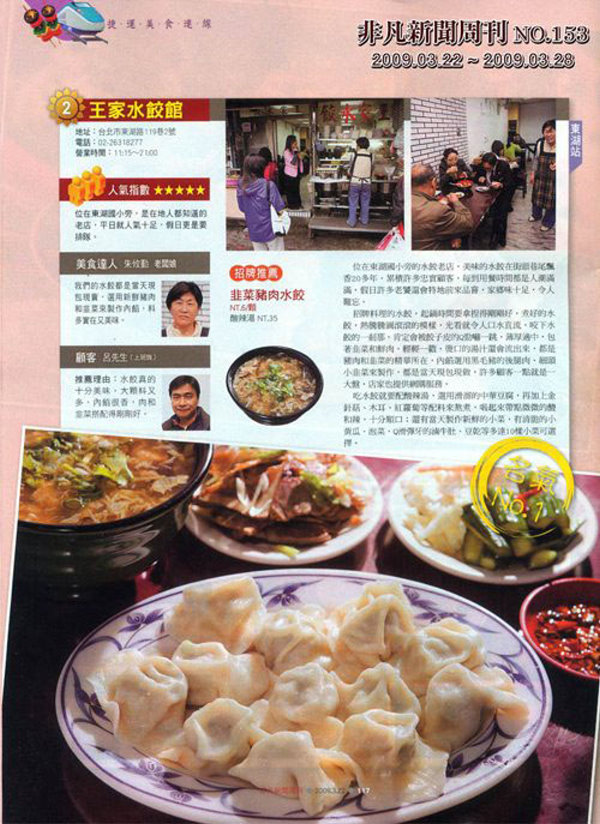 為了讓更多愛好者、支持者,可以更方便的分享我們的純手工水餃,特地開闢了網路訂購的管道,配合統一速達宅即便,全省配送冷凍水餃(不含離島),可以安心確保產品的新鮮及省去您親自排隊、取貨等待的時間,讓您透過宅配即可方便、省時地享受到新鮮美味的東湖王家手工現包水餃。