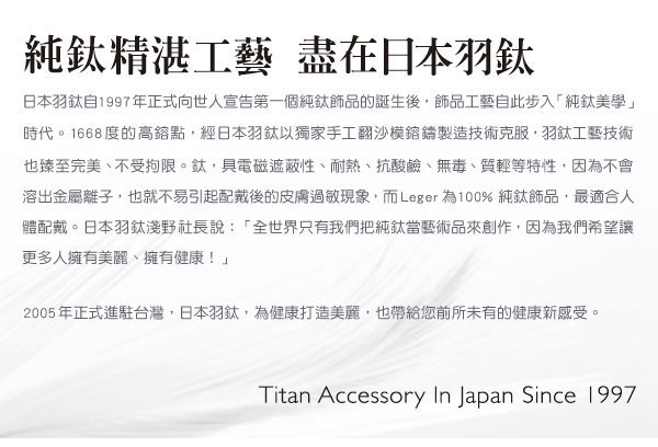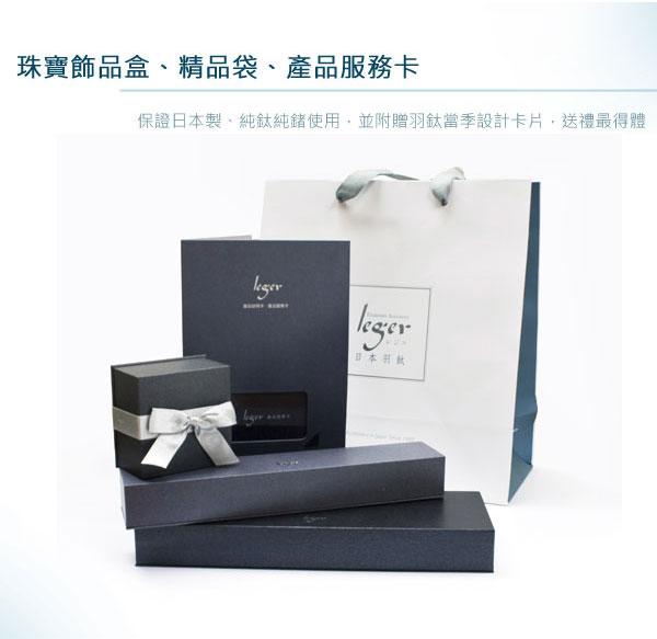 日本羽鈦Leger所有純鈦純鍺飾品保證全由日本產地設計鑄造、原裝進口,請消費者安心選購。