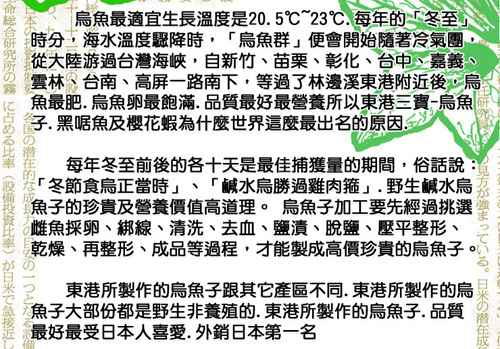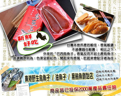 內容:東港野生烏魚子1片/盒 4兩