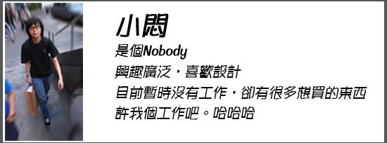 小悶是位非常有想法的朋友,想多了解他可以點 這裡 囉