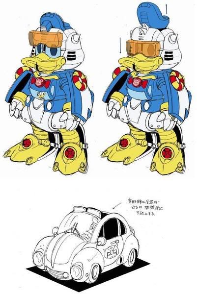 選用卡通版的金龜車搭配唐老鴨,不過變形後反而不是金龜車了啦>3<