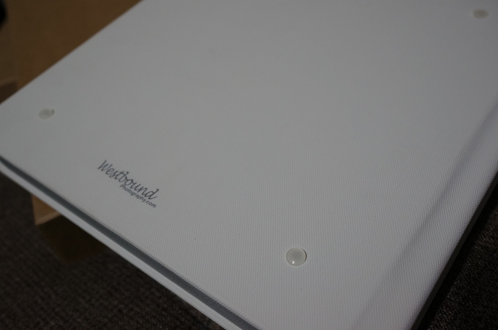 <h2> 還有還有~ </h2><h3> 本子的背面: 有四顆突出的防磨損矽膠,真的是佛心來的。</h3><h3> 這個重要的細節都顧到了,因為宴客當天一定會被拿來拿去、翻來翻去而磨損到了, 有了這四顆小尖兵 ,這本要留給子子孫孫看的婚紗本就多了防護。</h3><h3> 這般的用心和貼心,真是令人大讚!!!!!另外! 這本的封面選用"類油布畫"的質感