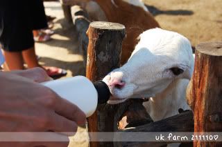 第一站~喂小羊喝奶 真的不是要我要說 他們好像一百天沒有喝過奶這樣 一下子 我的奶瓶就空了==